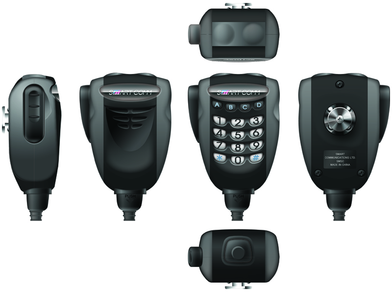 モービル(車載通信機)用に開発されたマイクロフォンのイラストレーターによる6面スケッチです。